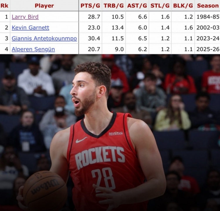 据统计,NBA历史上此前仅三人能够单赛季达成场均至少20分9篮板6助攻1抢断1盖帽,具体如下: